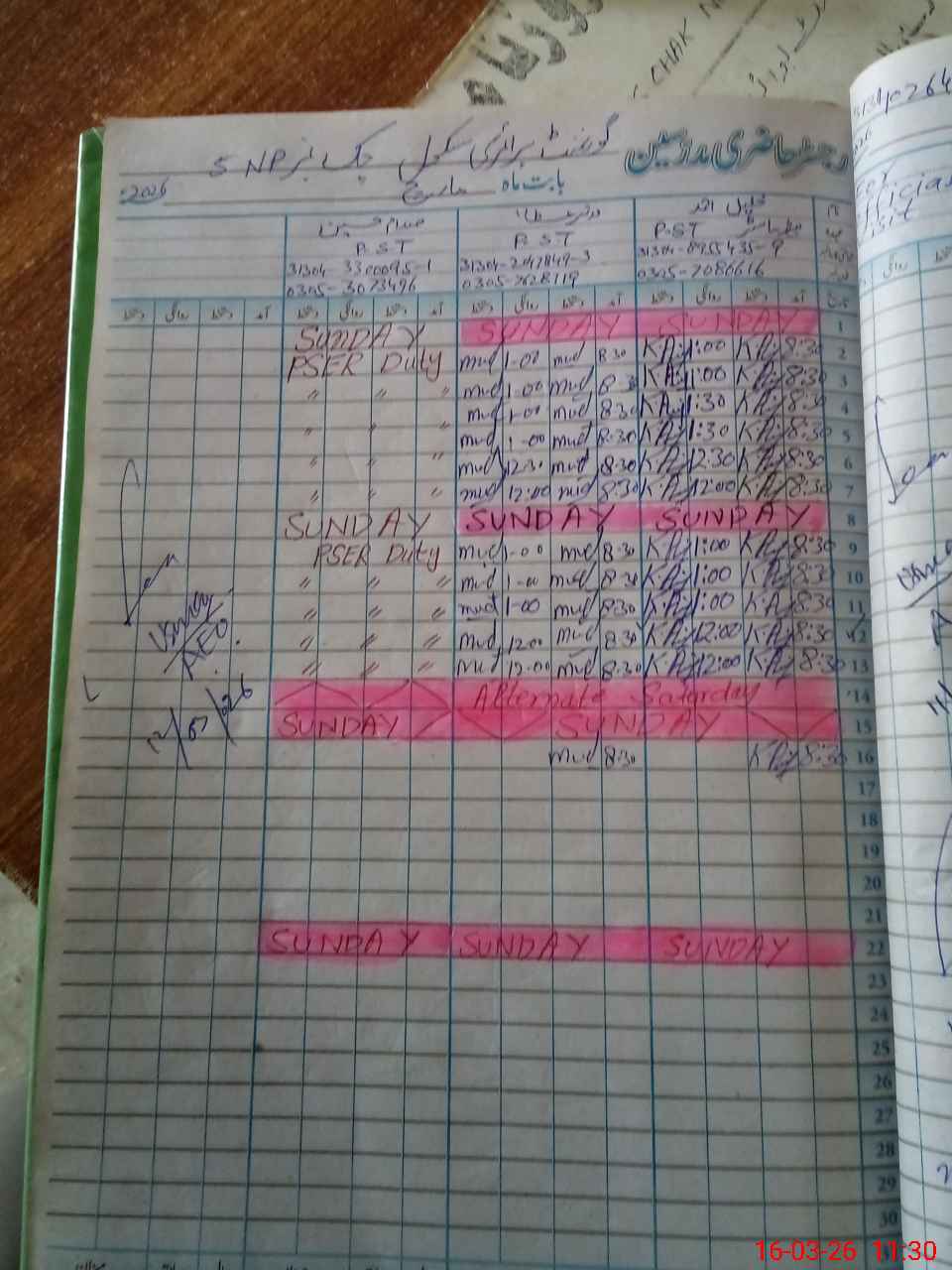| CNIC | Full Name | Designation | R/C | Absence During Last Calender Month |