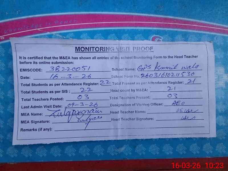 | EMIS Code: 38220051 | Name of School: GPS ISMAIL WALA | |||