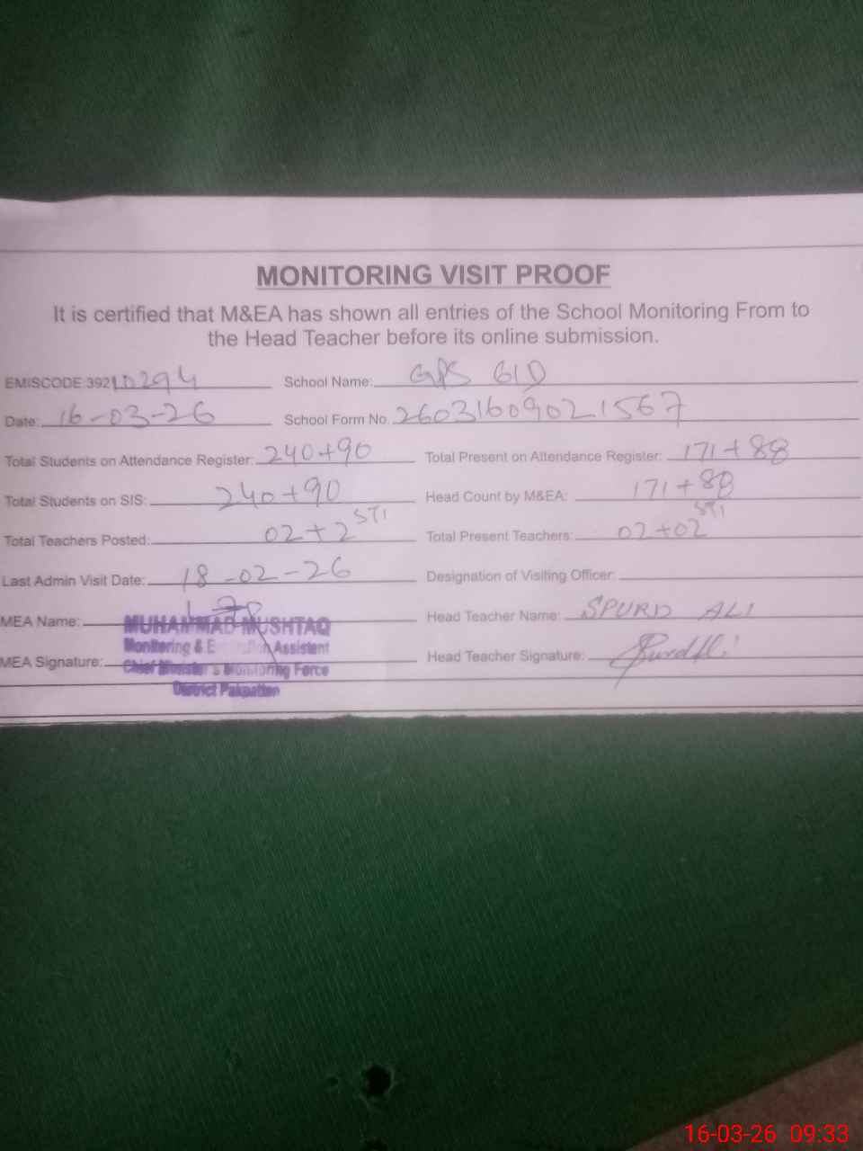 | EMIS Code: 39210294 | Name of School: GPS 61/D | |||