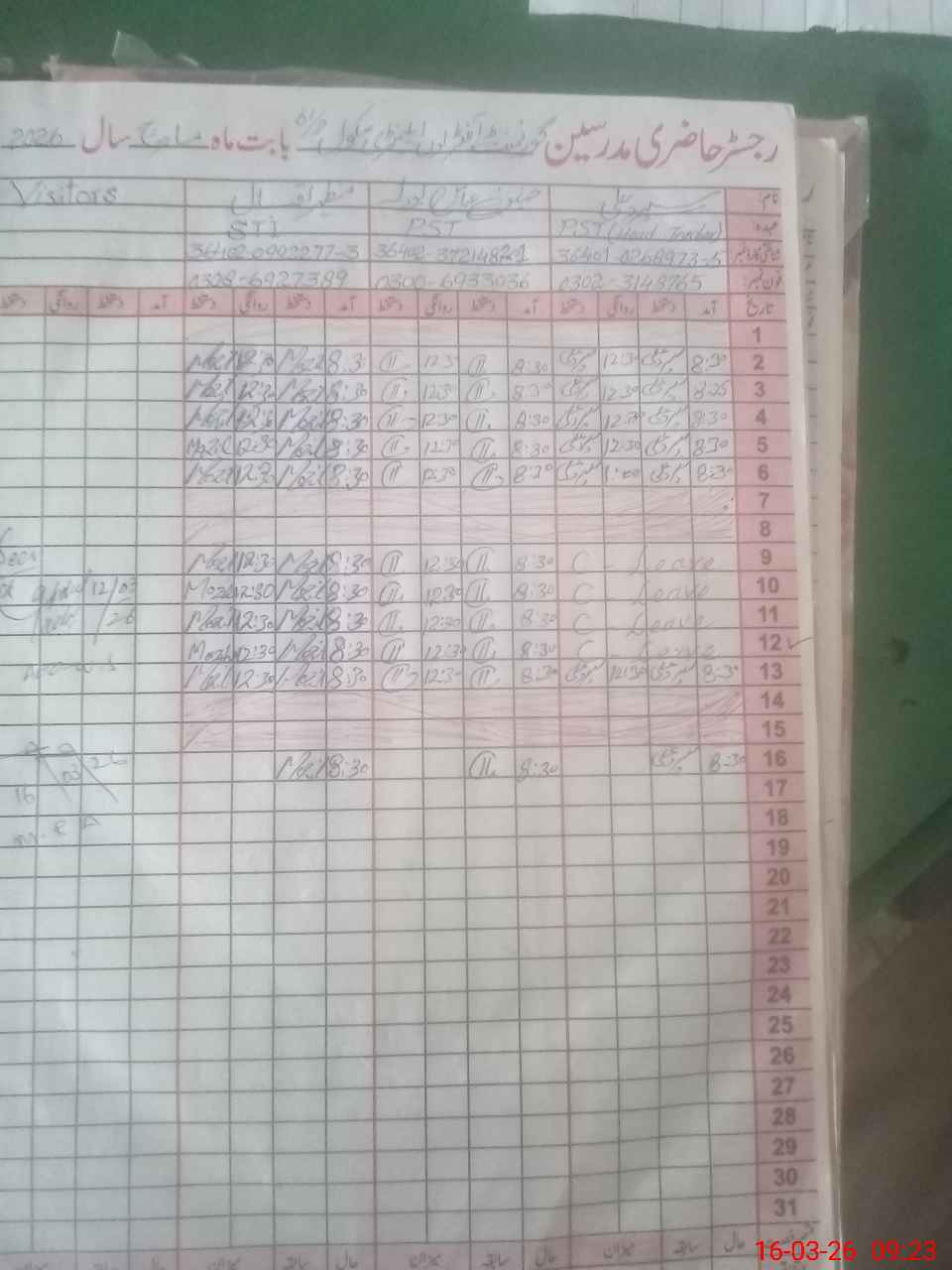 | Name: Sp**** Al**** Designation: (School Headmaster's/Headmistress's) PST Phone/Cell Number: 03**** |