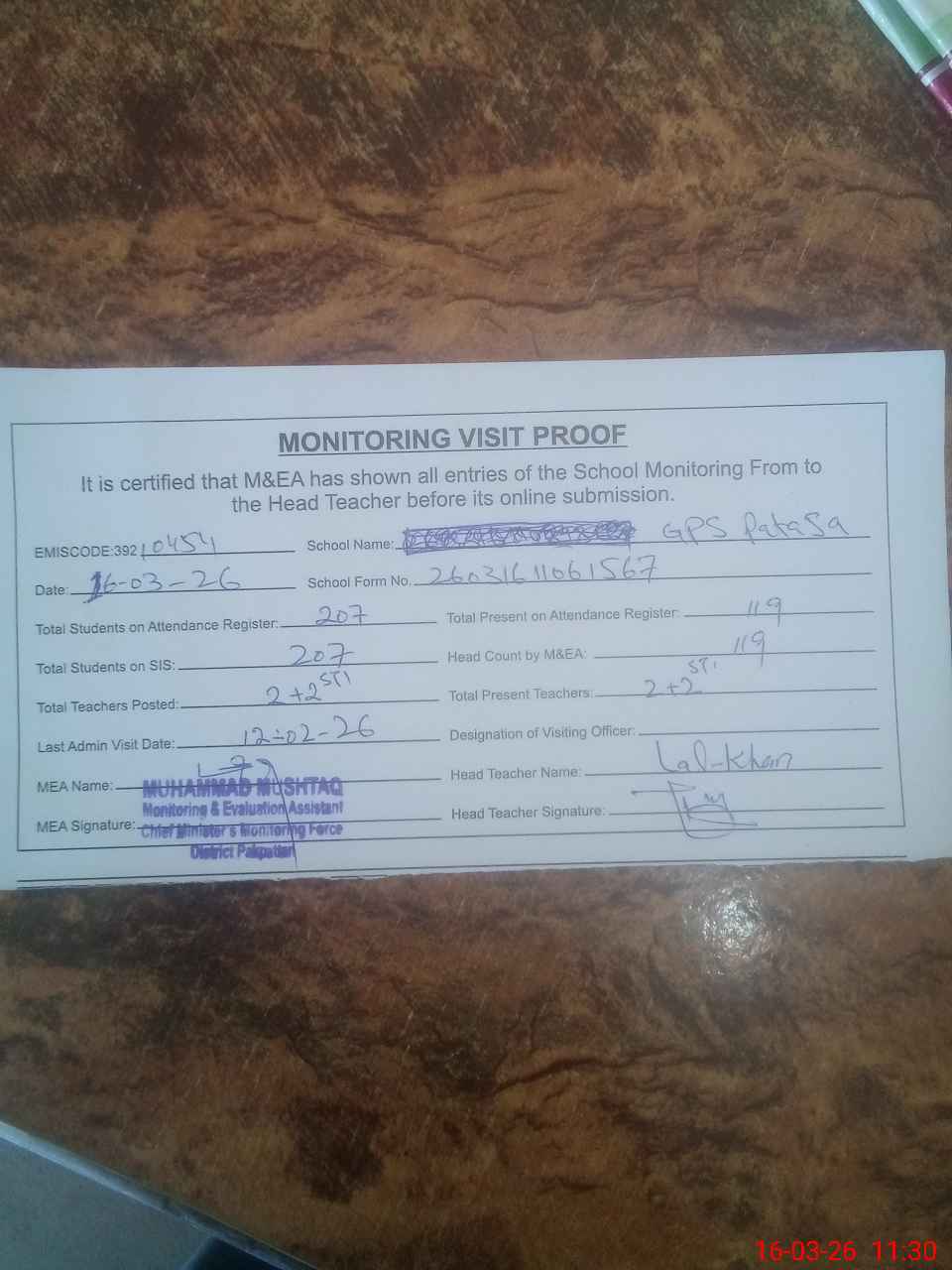 | EMIS Code: 39210454 | Name of School: GPS PATASA P/O DHUPAI | |||