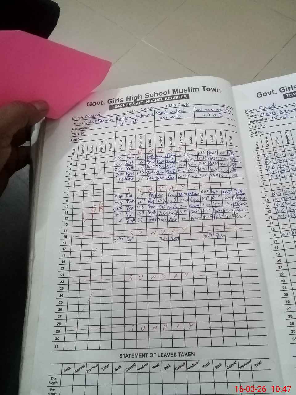 | 37**** | Re**** Kh**** | SST Arts | Regular | 0 | 0 | 0 | 0 | 0 | 0 | 0 | 0 | 0 | Absent (Un-Authorized) |