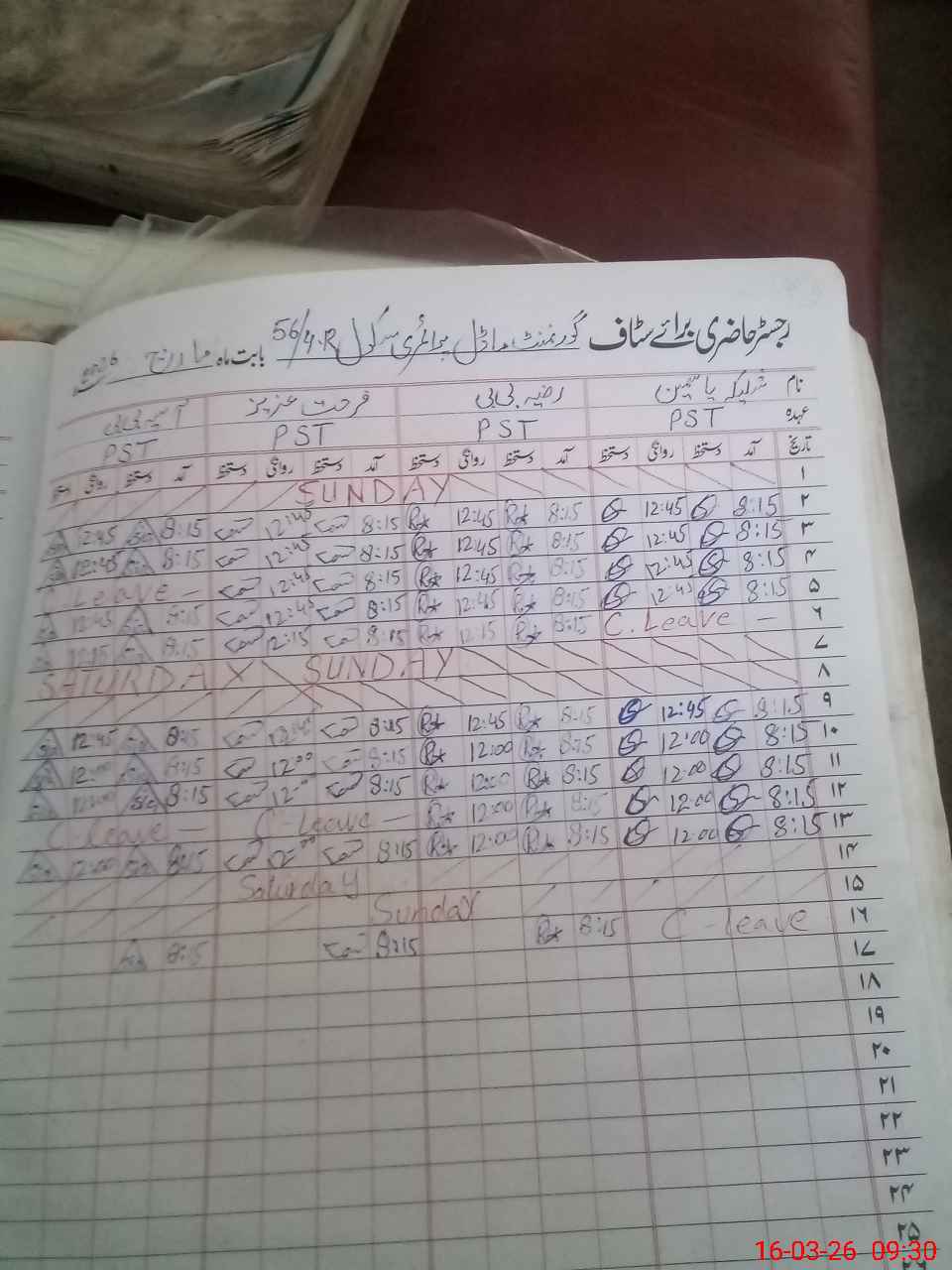 | 33**** | Sh**** Ya**** | PST Arts | Regular | 0 | 0 | 0 | 0 | 0 | 0 | 0 | 0 | 0 | Casual |