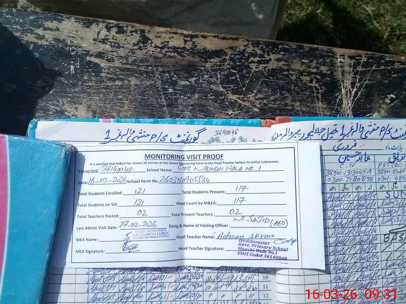 | EMIS Code: 36140048 | Name of School: GPS MUNSHI WALA P/O JUGGU WALA | |||