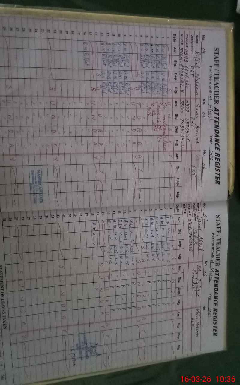 | CNIC | Full Name | Designation | R/C | Absence During Last Calender Month |