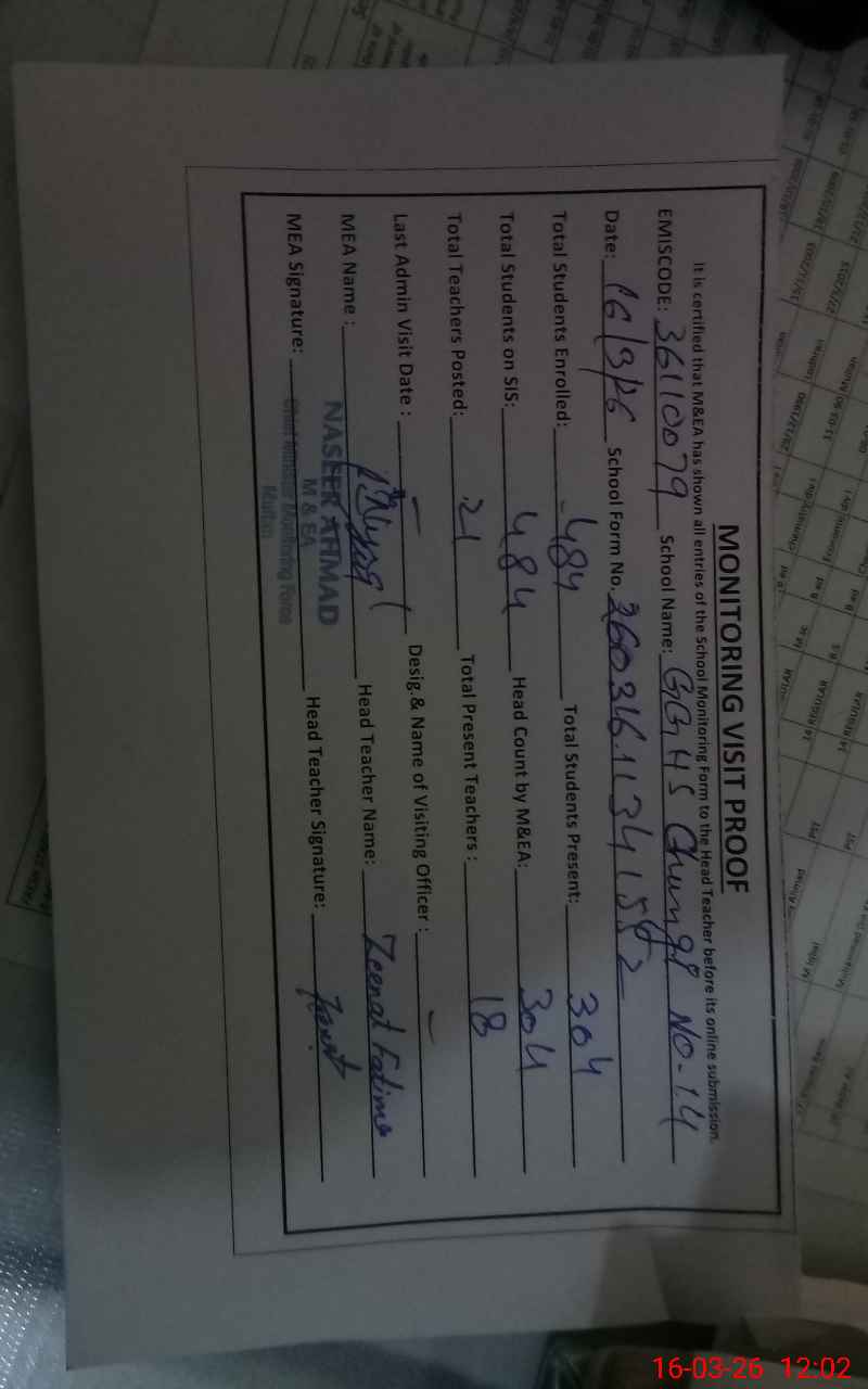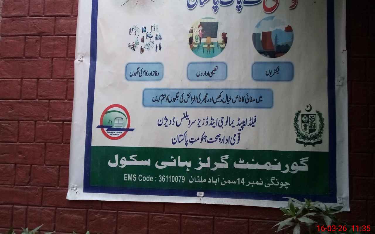 | EMIS Code: 36110079 | Name of School: GGHS CHUNGI NO. 14 SAMANABAD MULTAN | |||