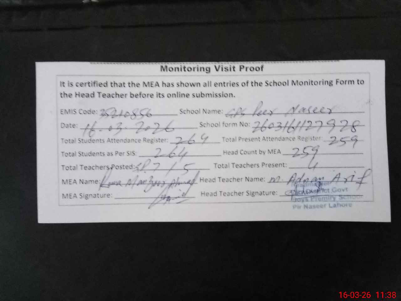 | EMIS Code: 35210856 | Name of School: GPS PIR NASEER (EX-MCL) | |||