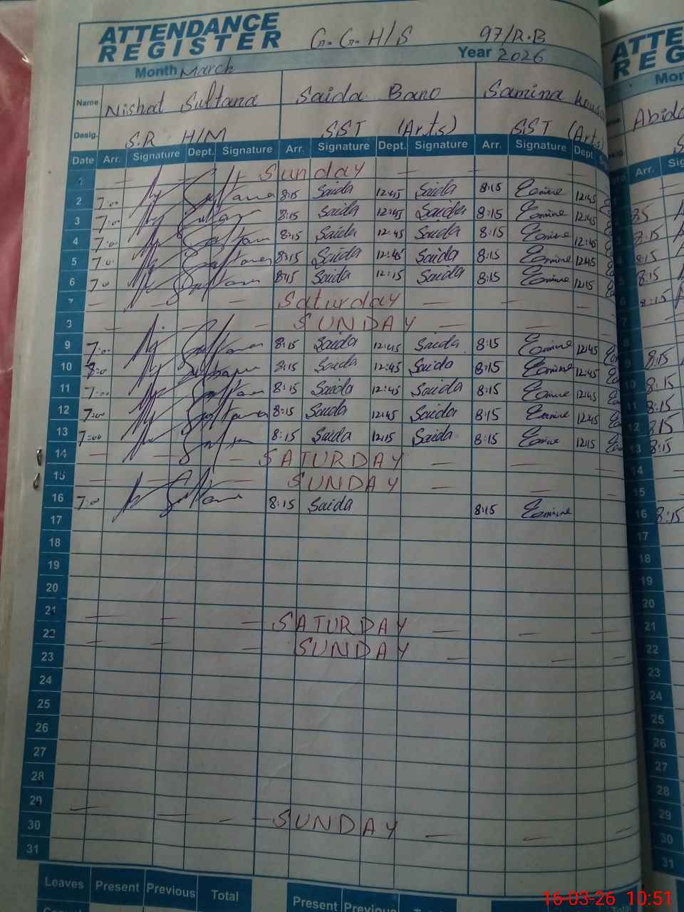 | Monitoring Date: 16-03-2026 | Start Time: 16-03-2026 09:09 AM | End Time: 16-03-2026 10:51 AM | Name of MEA: RA**** ME**** | |