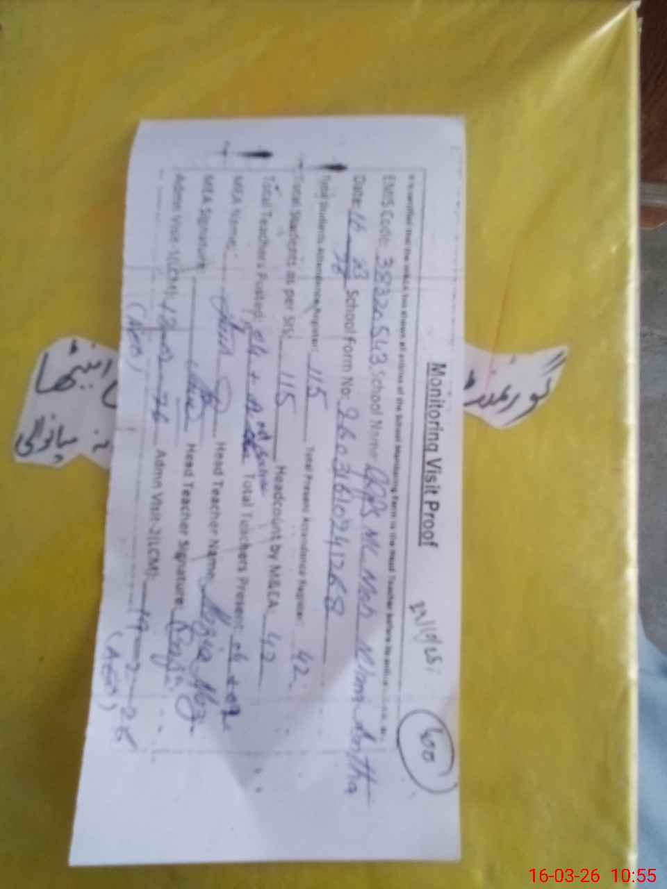 | Attendance Register | Head Teacher | MEA with School | Visit Proof |