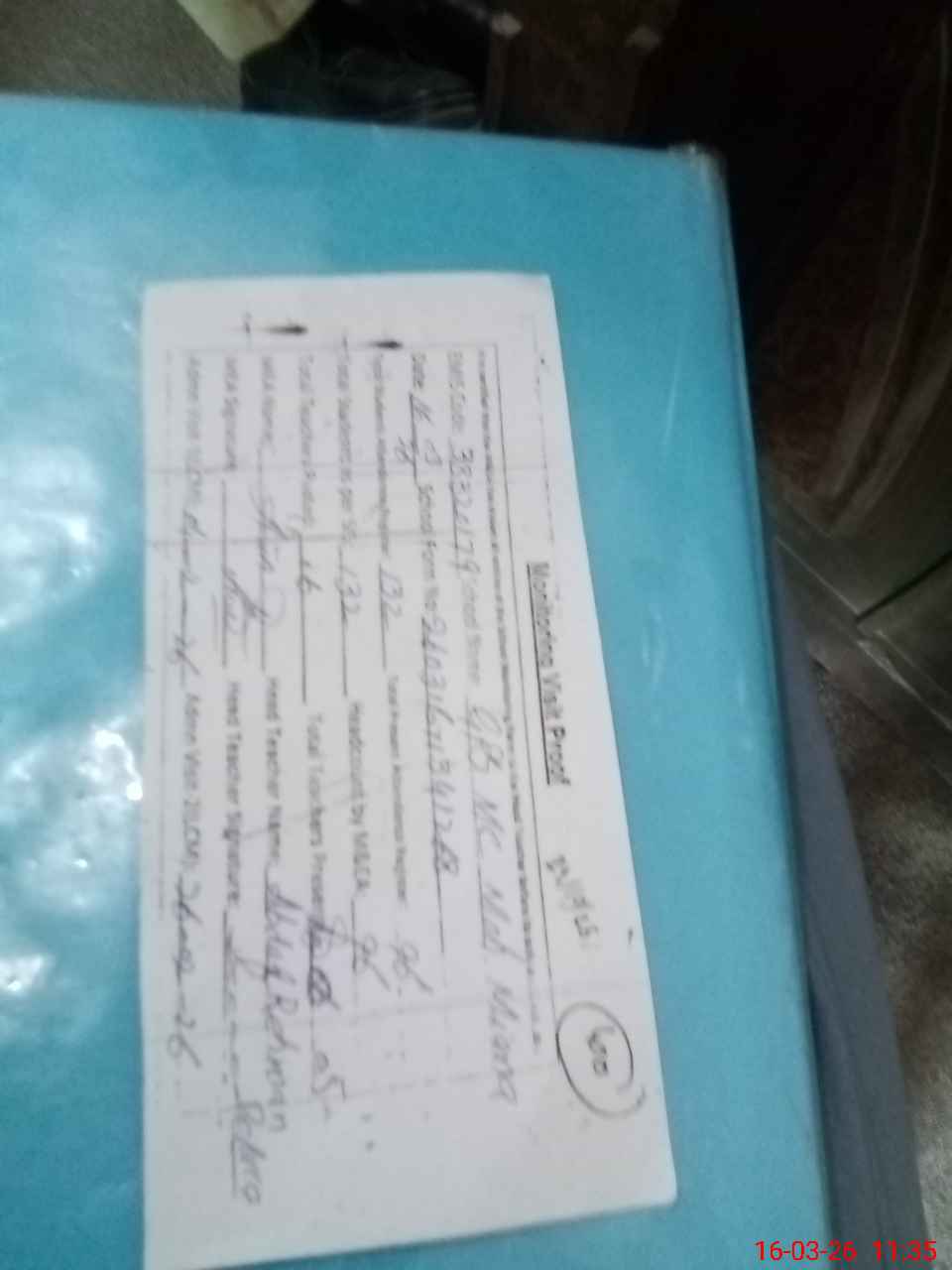 | Attendance Register | Head Teacher | MEA with School | Visit Proof |