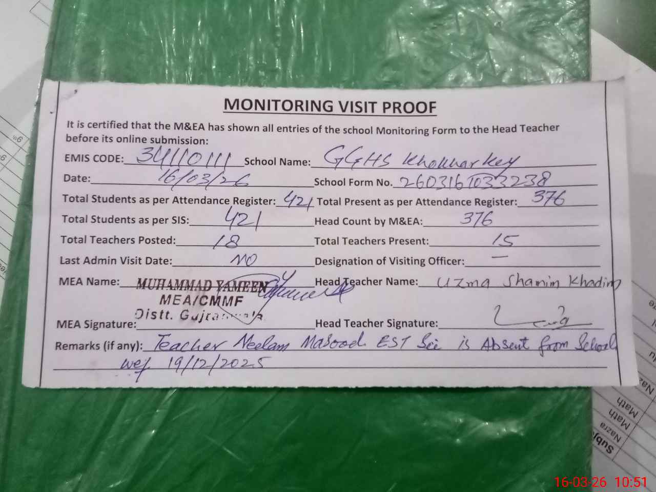 | EMIS Code: 34110111 | Name of School: GGHS KHOKHER KE | |||