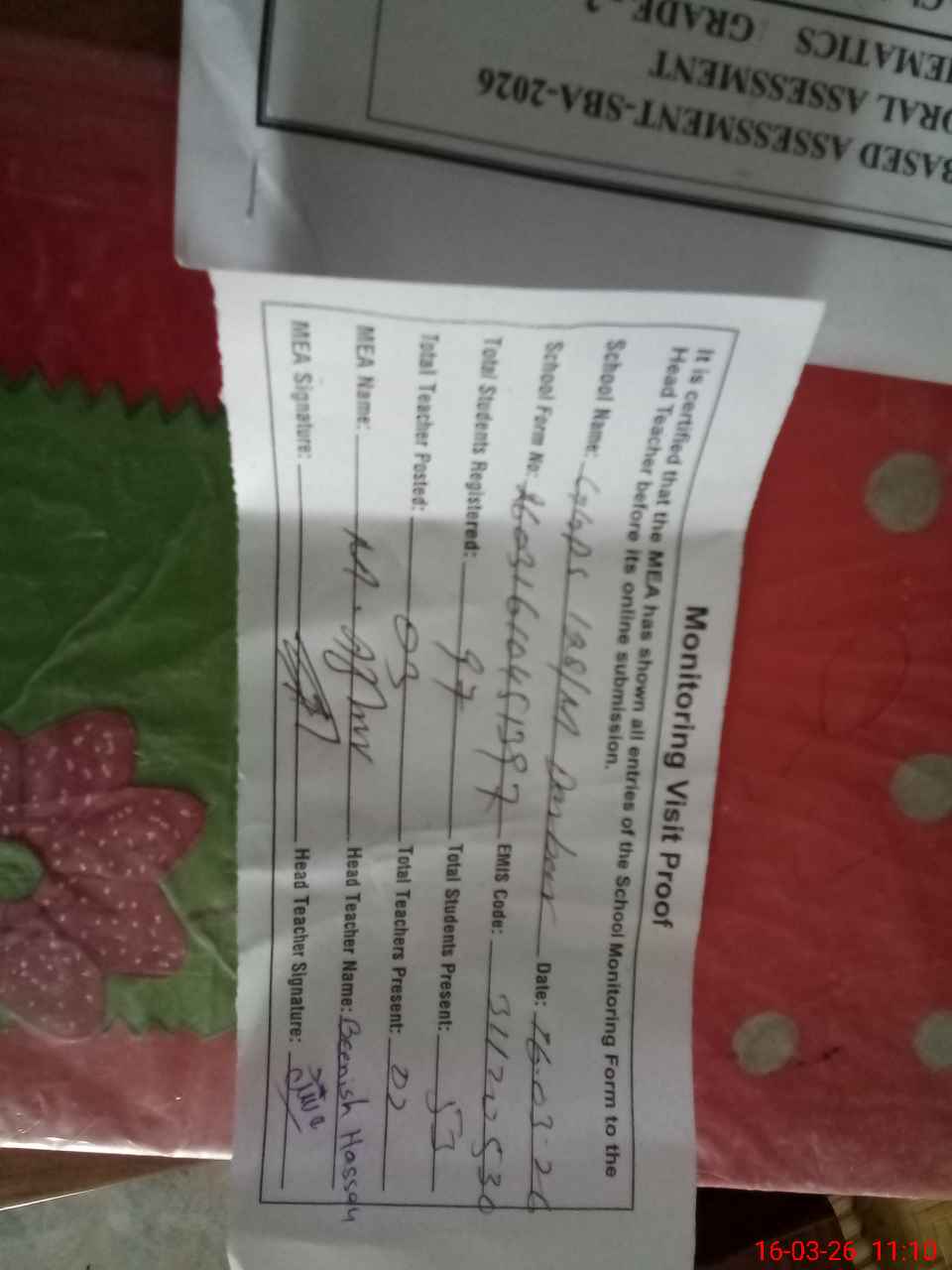 | Certified that this School was Inspected by the Undersigned MEA/DMO Today and the Information Stated Above is as Per Record. | |||||