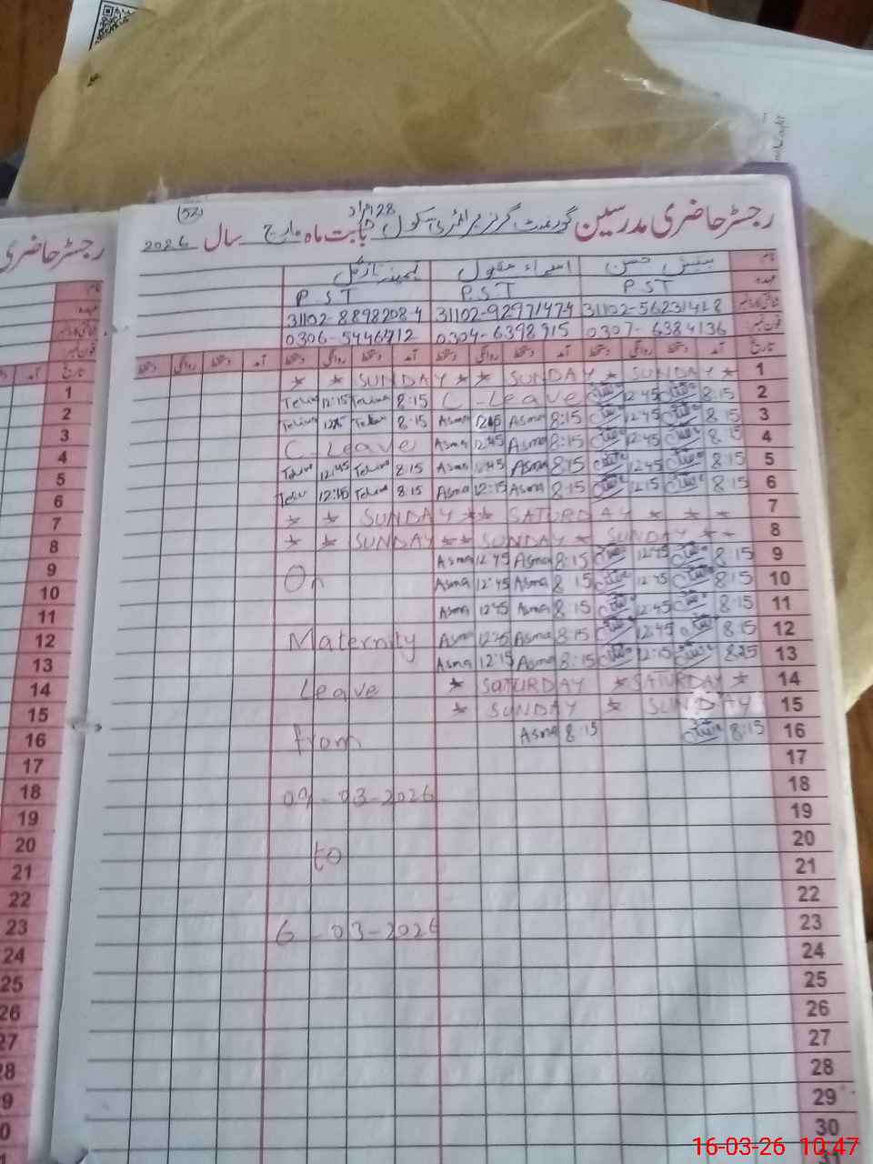| Remarks (Use Separate Page if Required): There is no approved Maternity leave of teacher Tehmina Naz Gill shown to mea from 09 March 2026 to 06 June 2026 and NSB RECORD REGISTER NOT SHOWN MEA AND STUDENTS ATTENDANCE REGISTER ARE NOT UPDATED | |||||