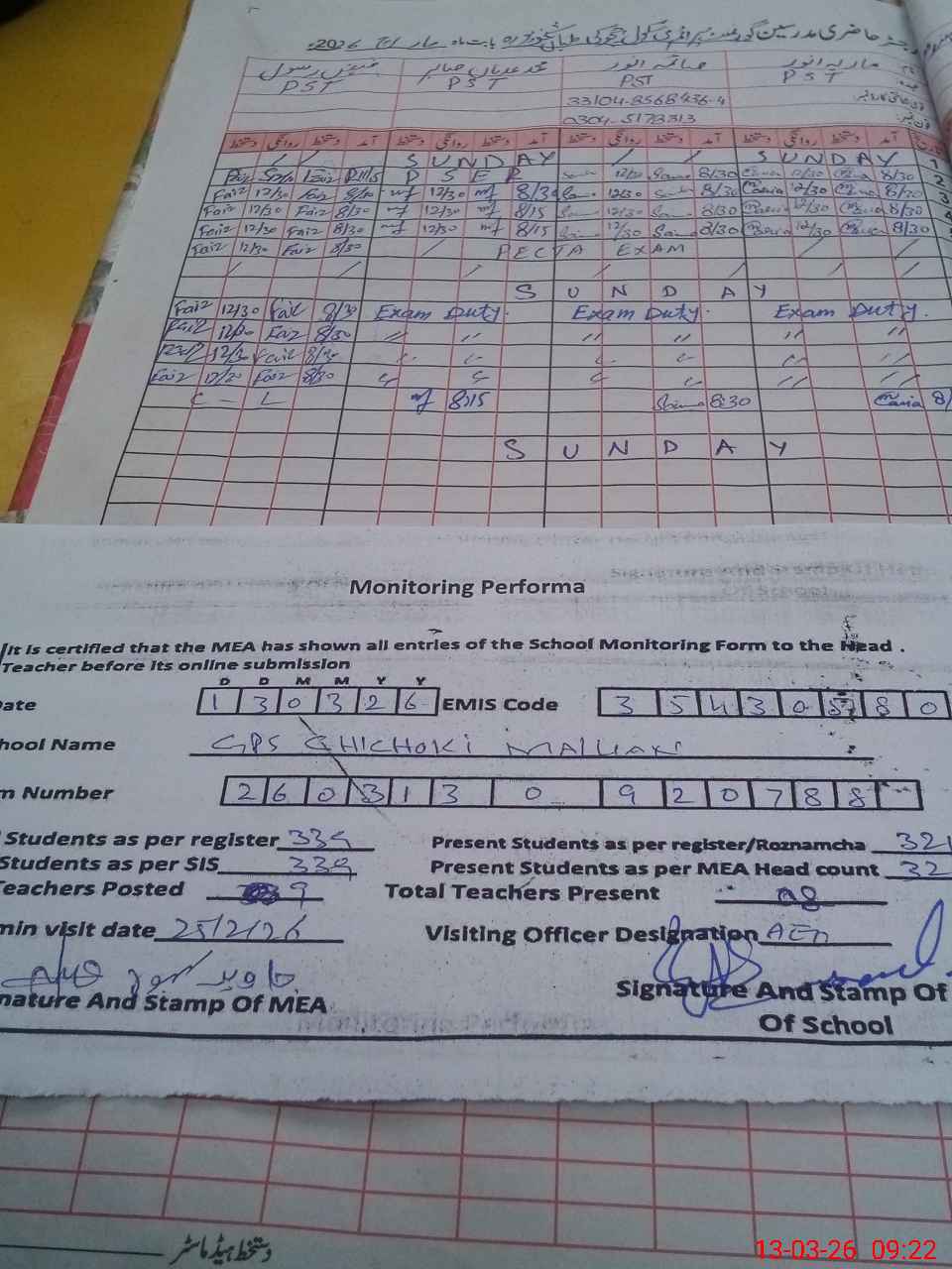 | EMIS Code: 35430580 | Name of School: GPS CHICHOKI MALIAN | |||