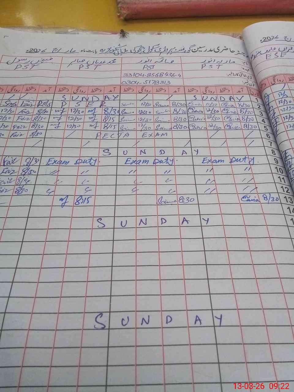 | Name: AK**** RA**** Designation: (School Headmaster's/Headmistress's) PST Phone/Cell Number: 03**** |