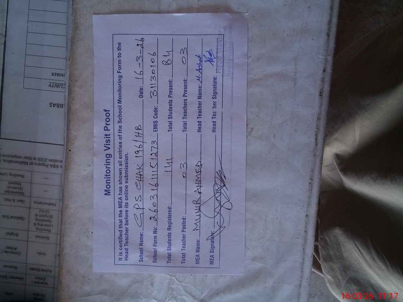 | EMIS Code: 31130106 | Name of School: GPS CHAK 196/HB | |||