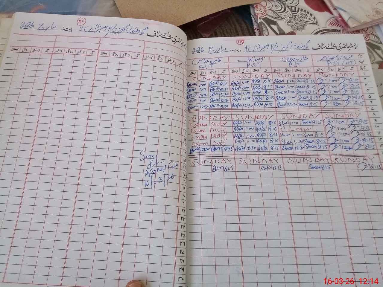 | Leave | Duty | Absent | Maternity | Medical | Ex- Pak |