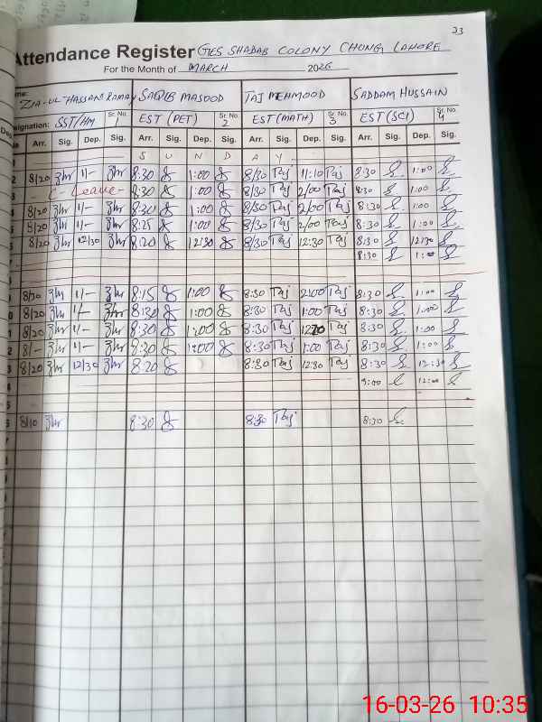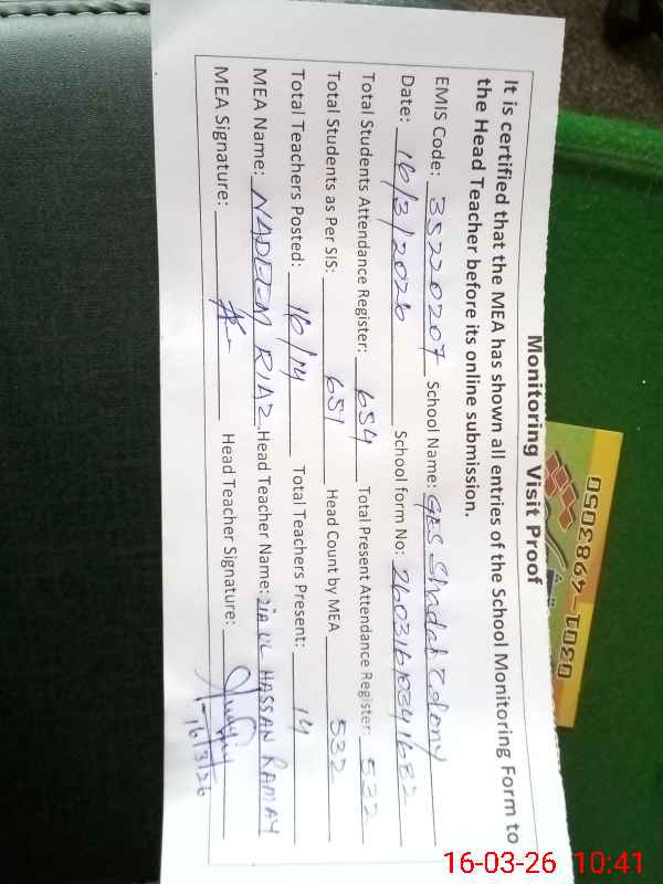 | EMIS Code: 35220207 | Name of School: GES SHADAB COLONY CHUNG LAHORE | |||