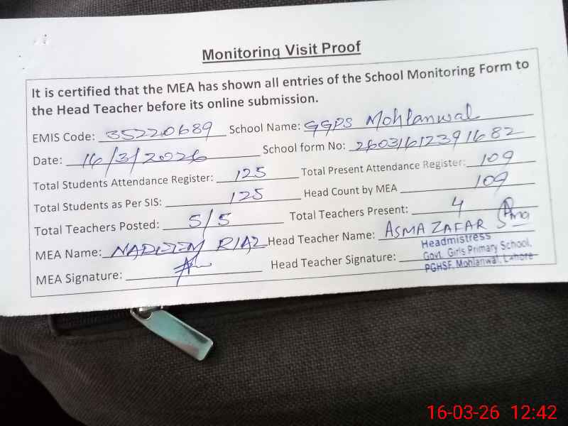 | EMIS Code: 35220689 | Name of School: GGPS MOHLANWAL PUNJAB SOCIETY | |||