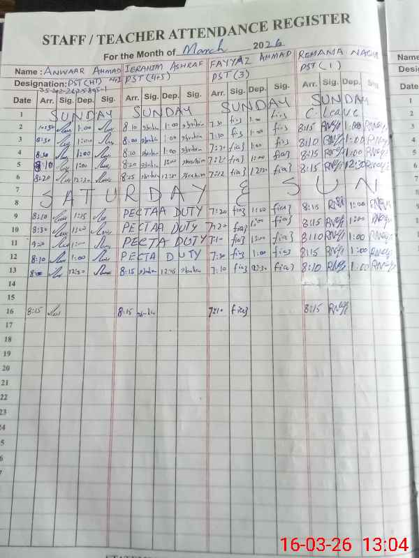 | CNIC | Full Name | Designation | R/C | Absence During Last Calender Month |