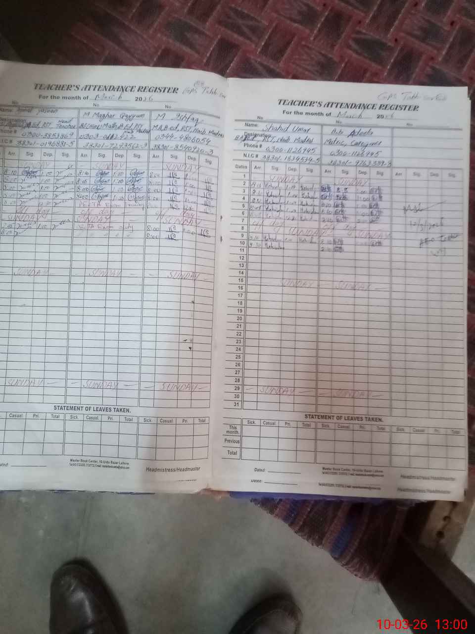 | Name: AJ**** YA**** Designation: (School Headmaster's/Headmistress's) HEADMASTER Phone/Cell Number: 03**** |