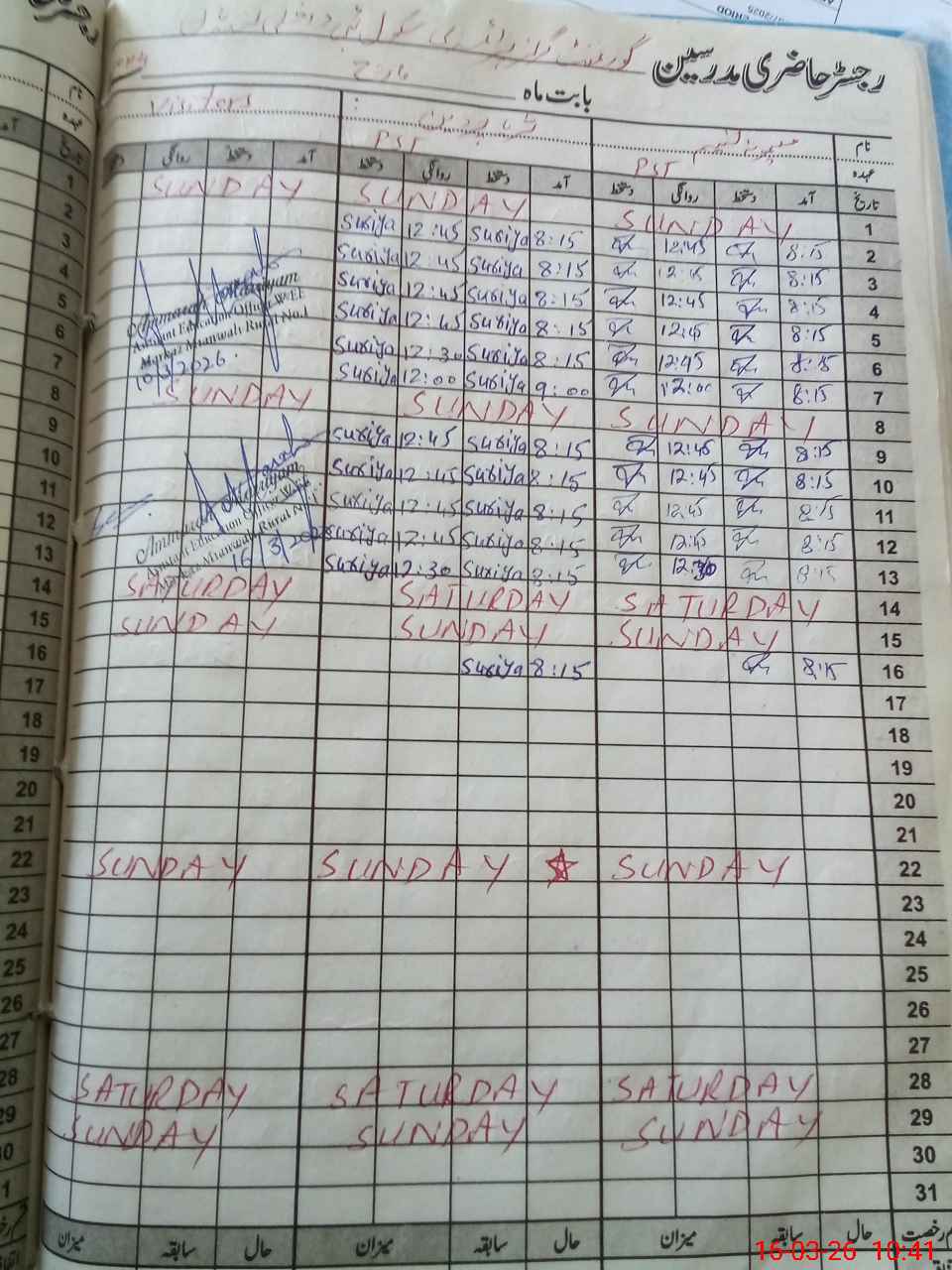 | CNIC | Full Name | Designation | R/C | Absence During Last Calender Month |
