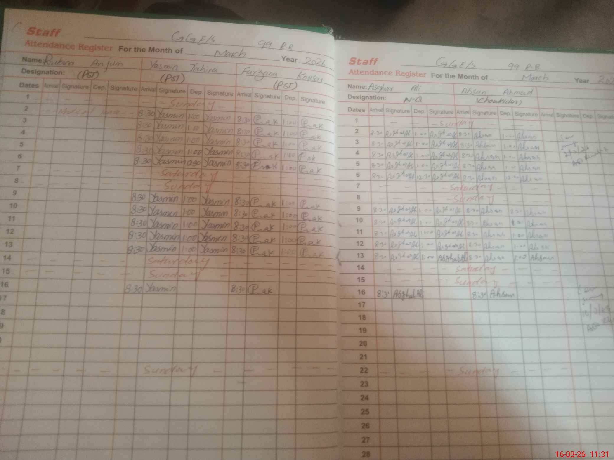 | Leave | Duty | Absent | Maternity | Medical | Ex- Pak |