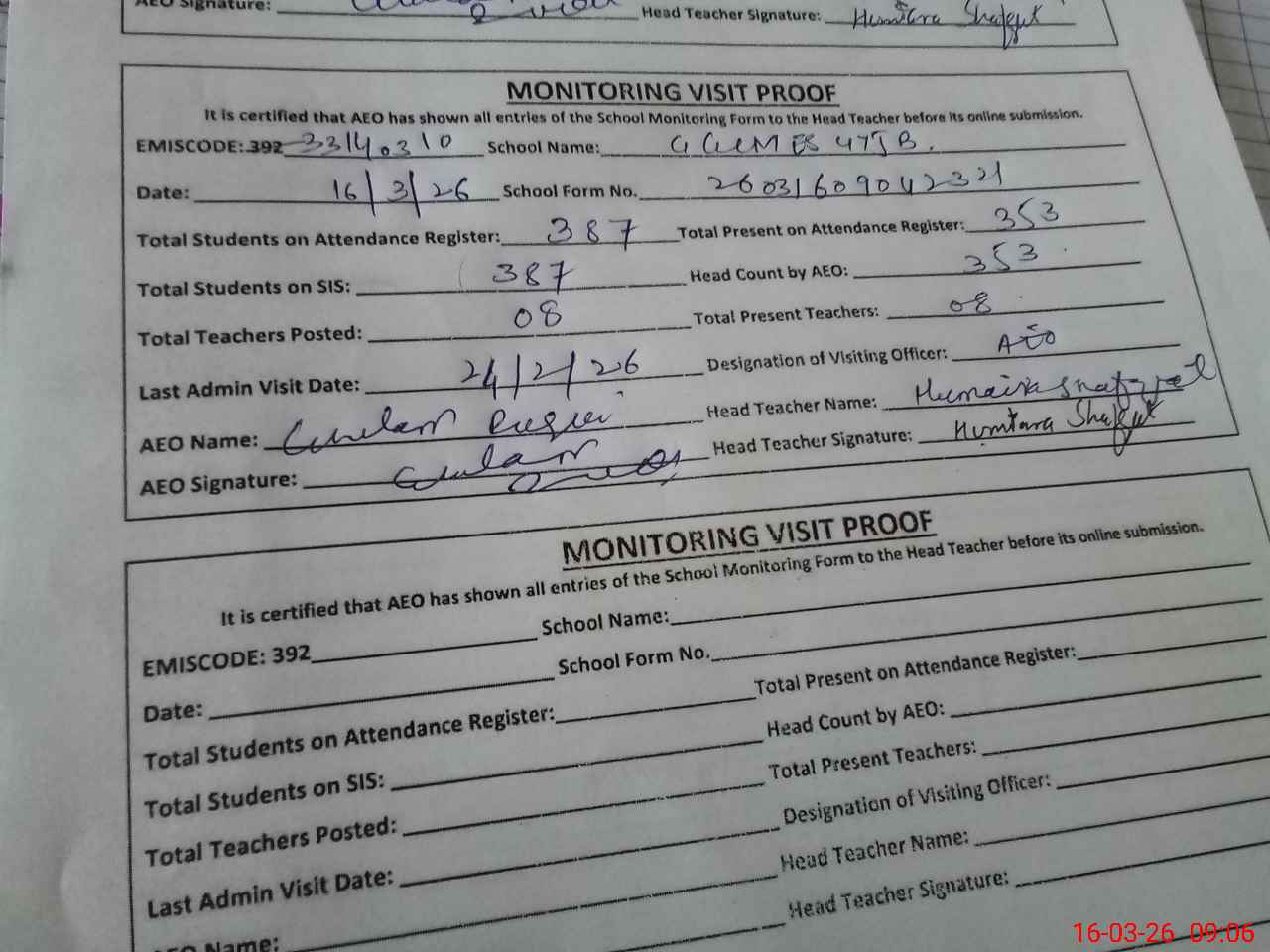 | Certified that this School was Inspected by the Undersigned MEA/DMO Today and the Information Stated Above is as Per Record. | |||||