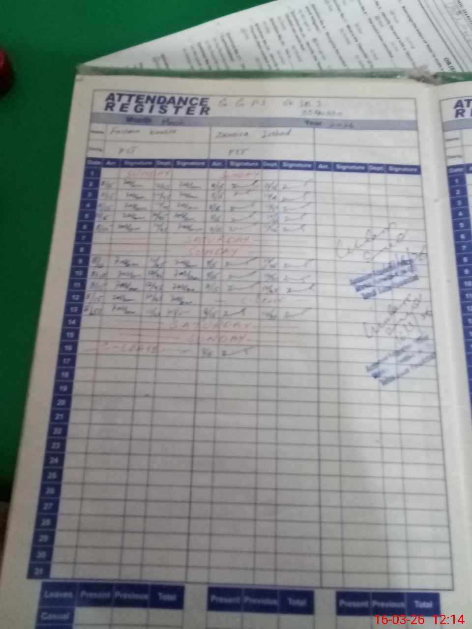 | 33**** | Fa**** Ka**** | PST Arts | Regular | 0 | 0 | 0 | 0 | 0 | 0 | 0 | 0 | 0 | Casual |