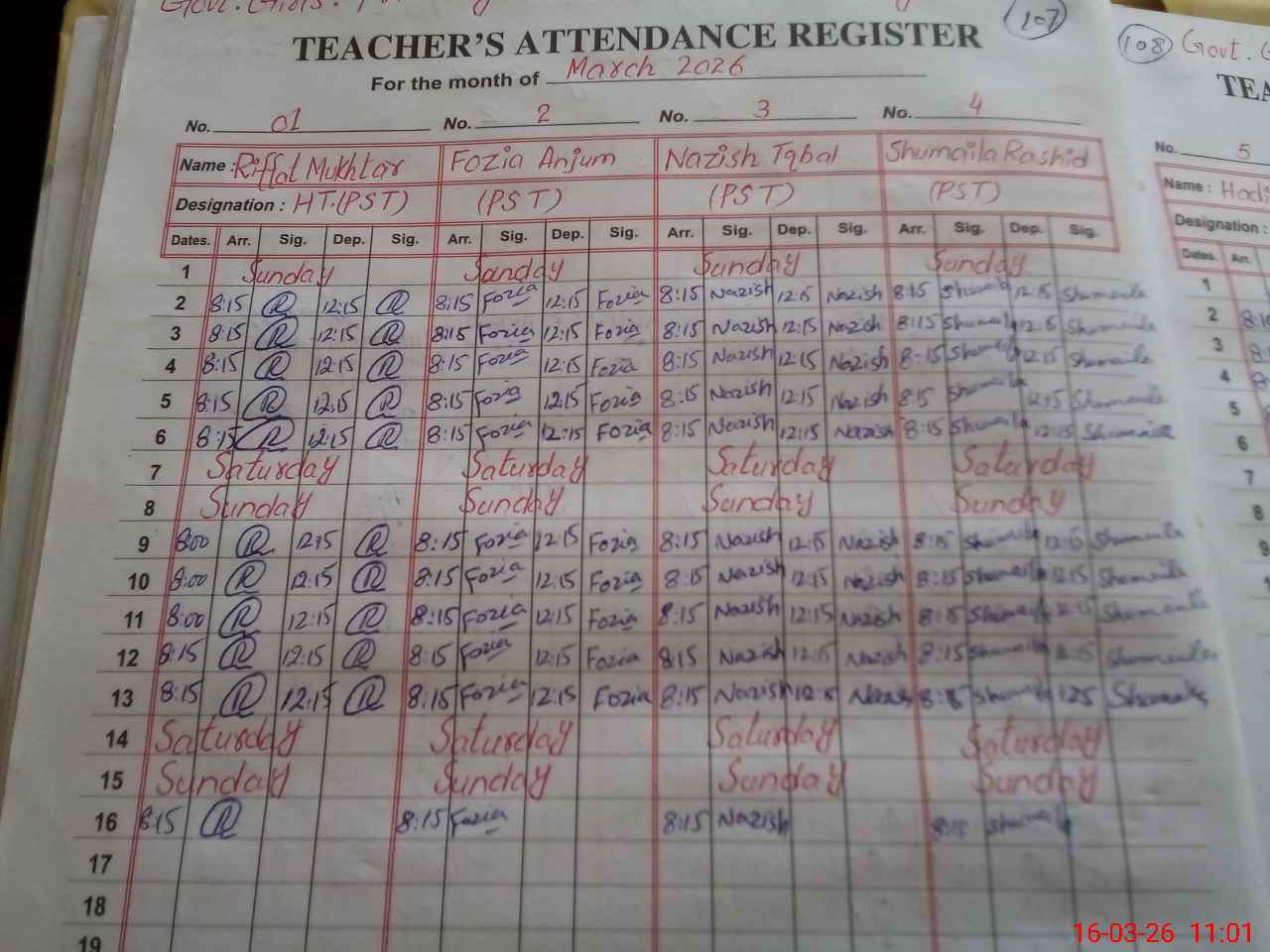 | Name: RI**** MU**** Designation: (School Headmaster's/Headmistress's) PST Phone/Cell Number: 03**** |