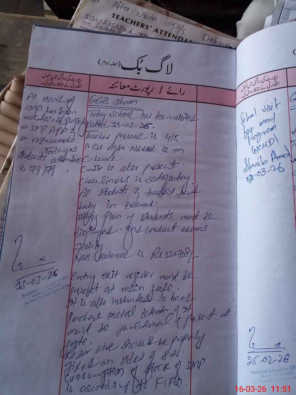 | Certified that this School was Inspected by the Undersigned MEA/DMO Today and the Information Stated Above is as Per Record. | |||||