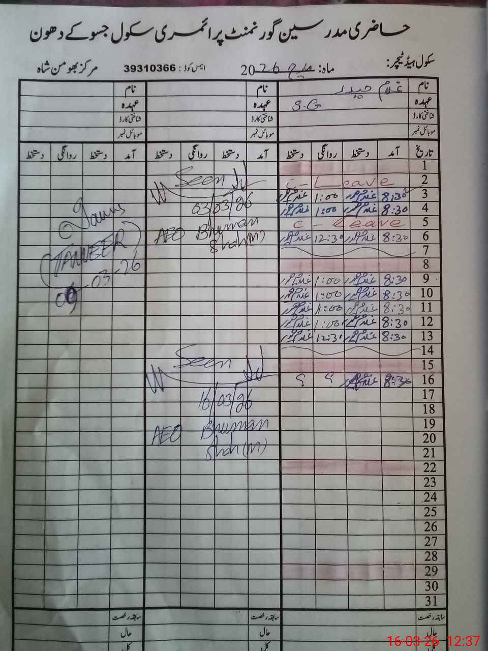 | Name: RA**** AL**** Designation: (School Headmaster's/Headmistress's) PST Phone/Cell Number: 03**** |