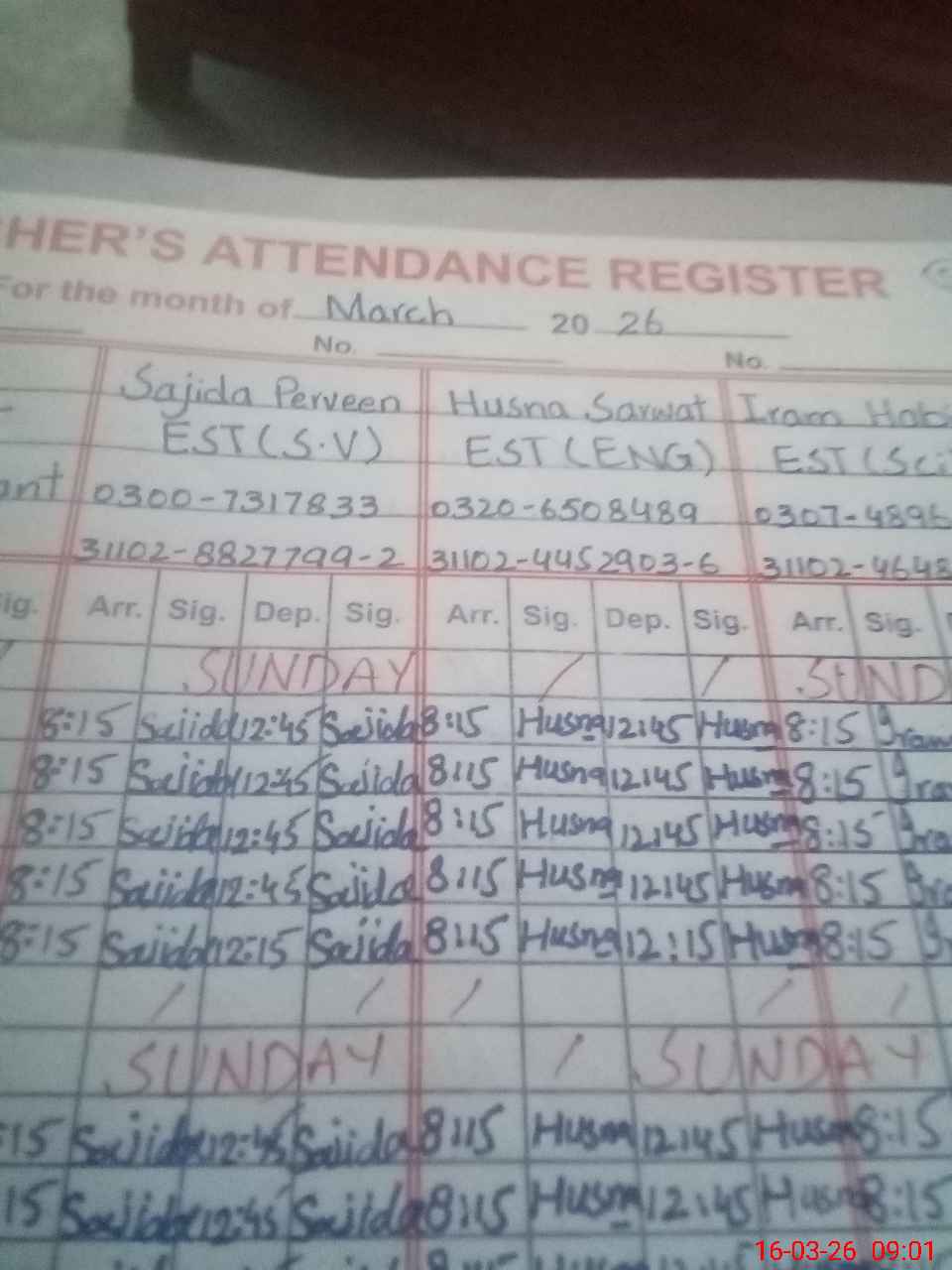 | Name: Sa**** Pa**** Designation: (School Headmaster's/Headmistress's) EST Phone/Cell Number: 03**** |