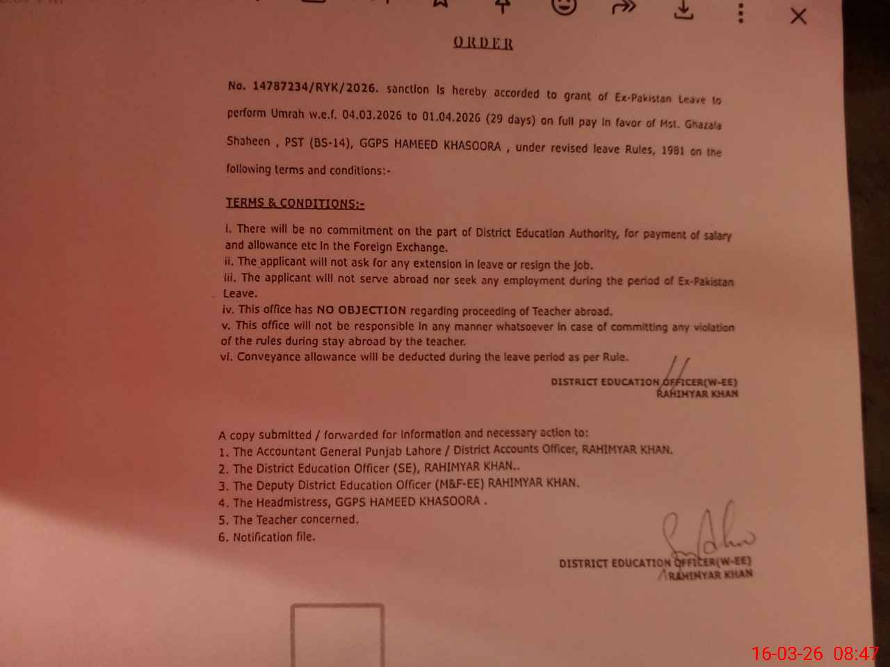 | Name: Sa**** Ri**** Designation: (School Headmaster's/Headmistress's) PST/PTC/JV Phone/Cell Number: 03**** |