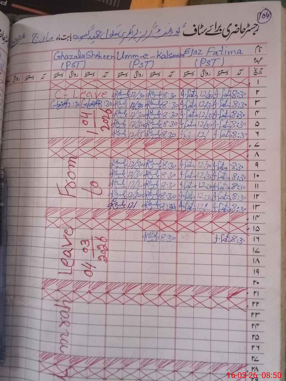 | Leave | Duty | Absent | Maternity | Medical | Ex- Pak |