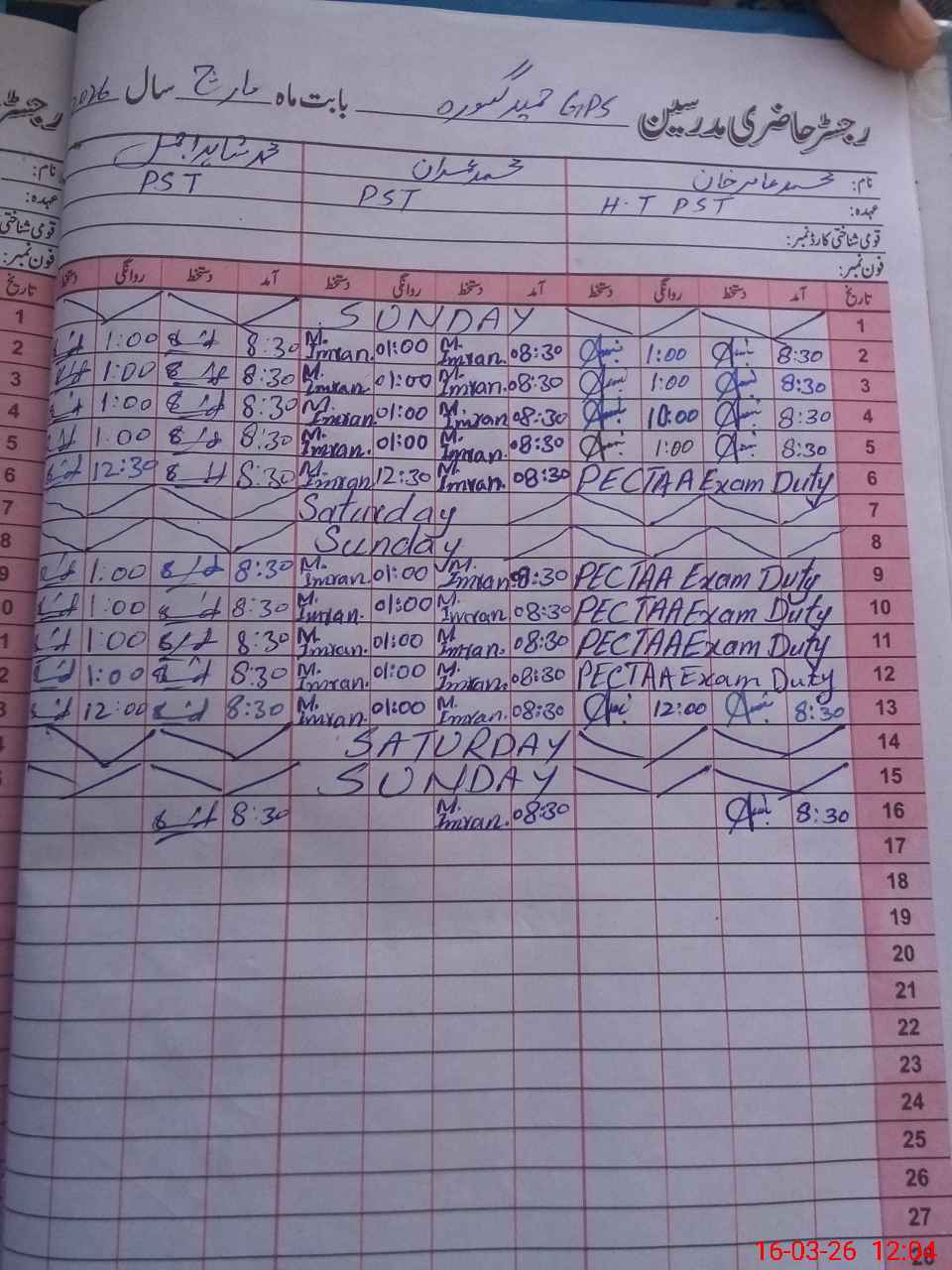 | Name: MU**** AA**** KH**** Designation: (School Headmaster's/Headmistress's) PST Phone/Cell Number: 03**** |