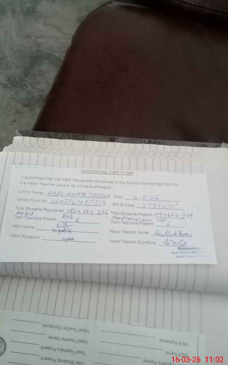 | Attendance Register | Head Teacher | MEA with School | Visit Proof |