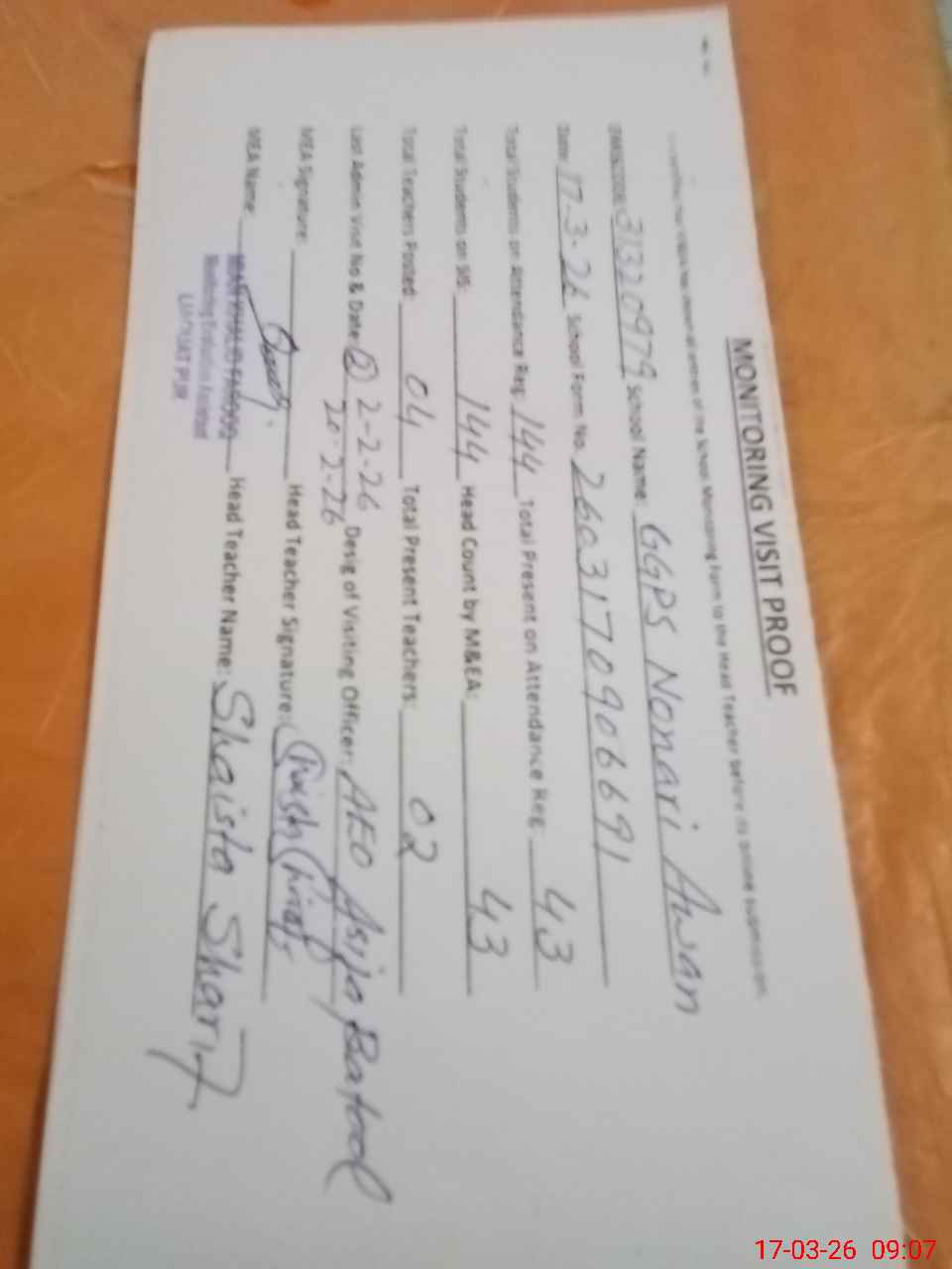 | EMIS Code: 31320979 | Name of School: GGPS NONARI AWAN | |||