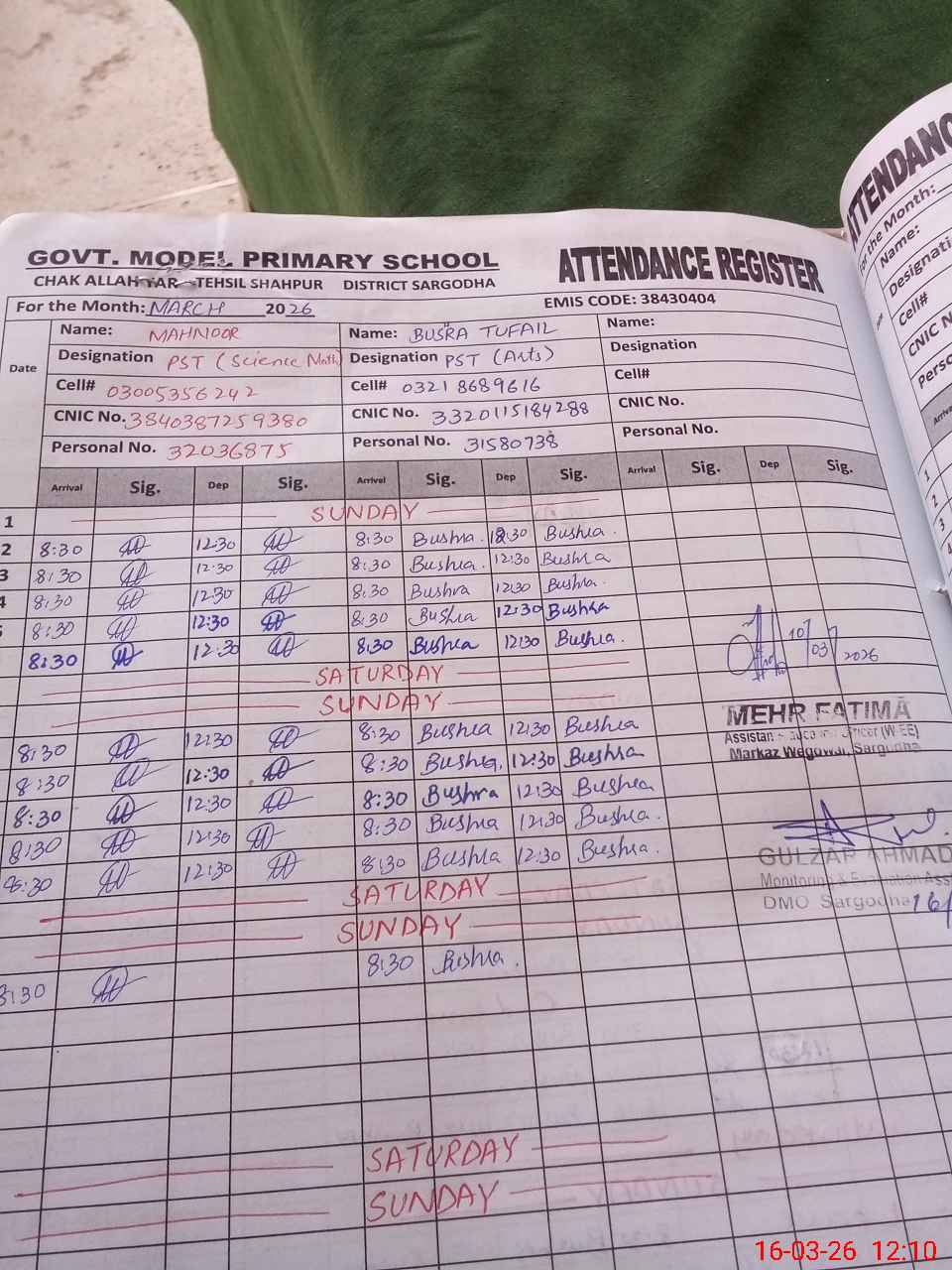 | Name: MA**** NO**** Designation: (School Headmaster's/Headmistress's) ESE (Science) Phone/Cell Number: 03**** |