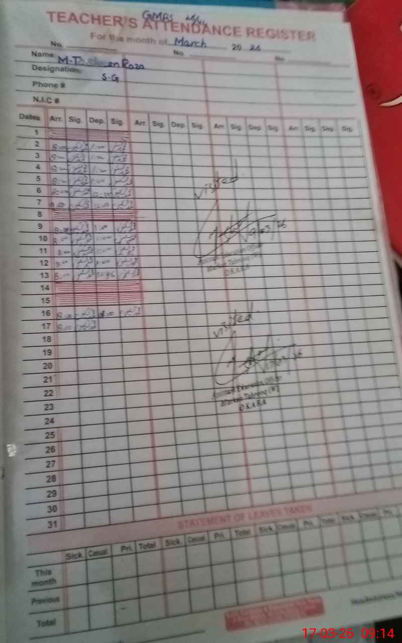 | Name: AR**** IQ**** Designation: (School Headmaster's/Headmistress's) PST Phone/Cell Number: 03**** |