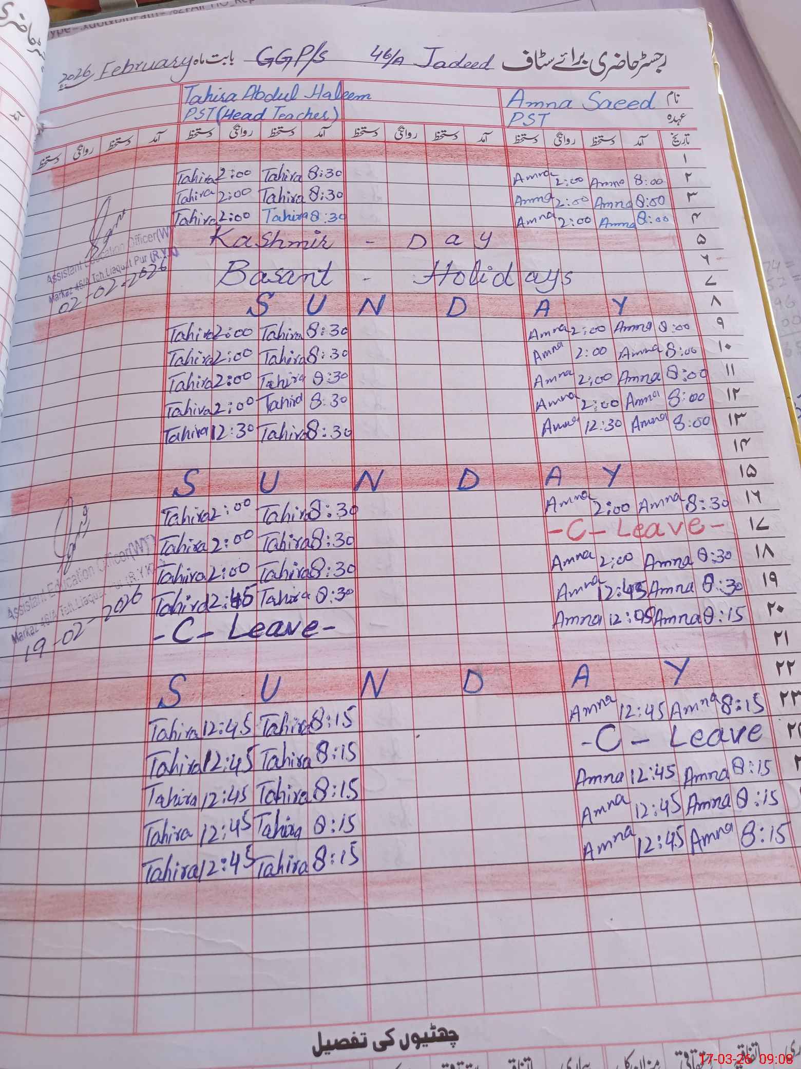 | Name: TA**** AB**** HA**** Designation: (School Headmaster's/Headmistress's) PST/PTC/JV Phone/Cell Number: 03**** |