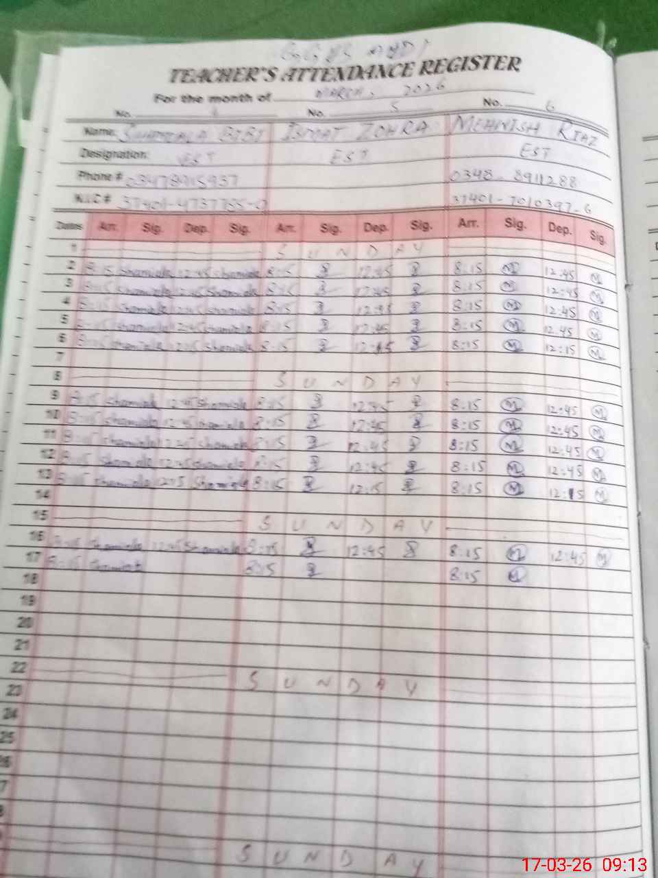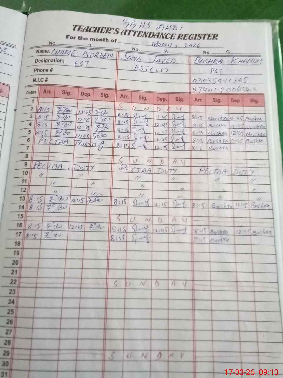 | 37**** | Su**** Mu**** | PST Science/Maths | Regular | 0 | 0 | 0 | 0 | 0 | 0 | 0 | 0 | 0 | Maternity |
