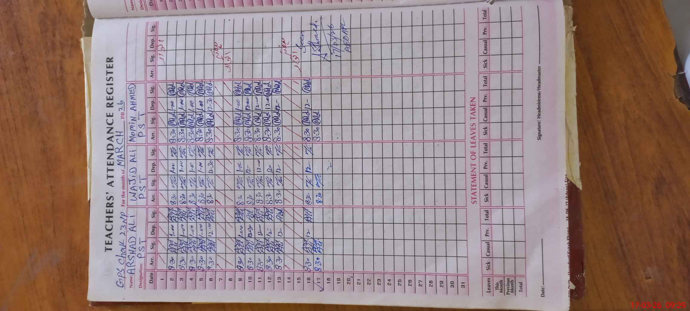 | Name: AR**** AL**** Designation: (School Headmaster's/Headmistress's) PST Phone/Cell Number: 03**** |