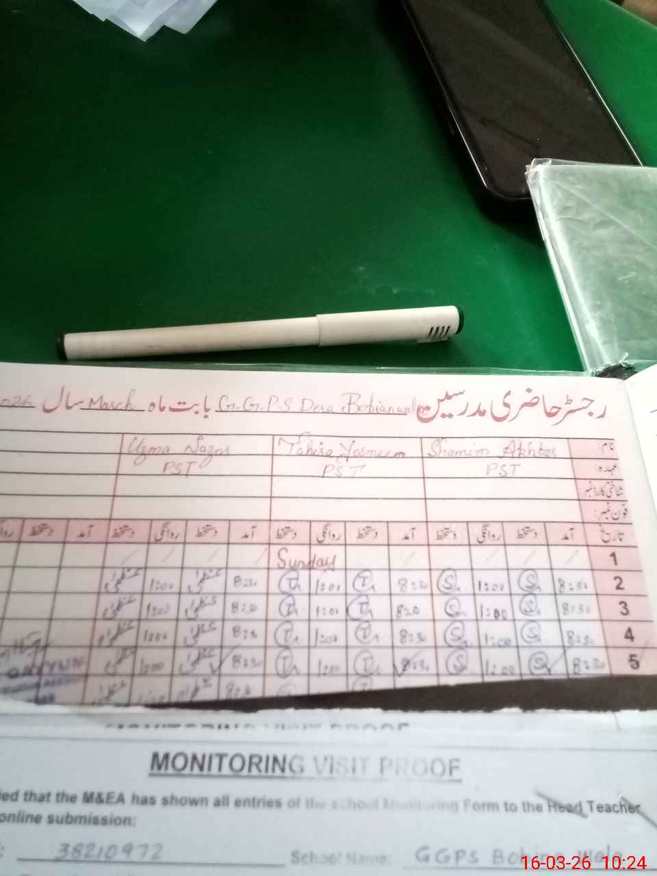 | Attendance Register | Head Teacher | MEA with School | Visit Proof |