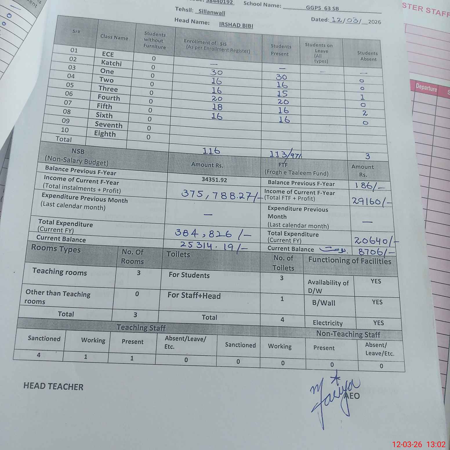 | EMIS Code: 38440192 | Name of School: GGPS CHAK NO.63 SB | |||