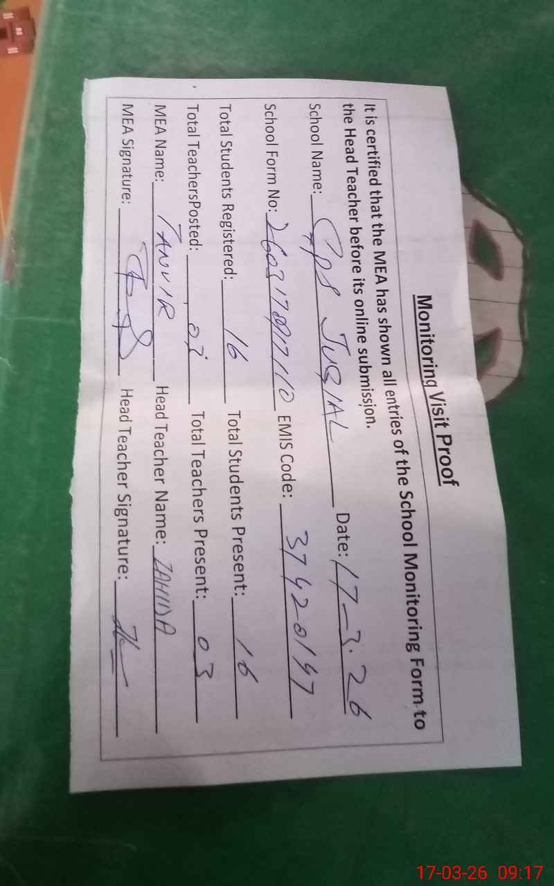 | EMIS Code: 37420147 | Name of School: GPS DHOK JUGIAL | |||