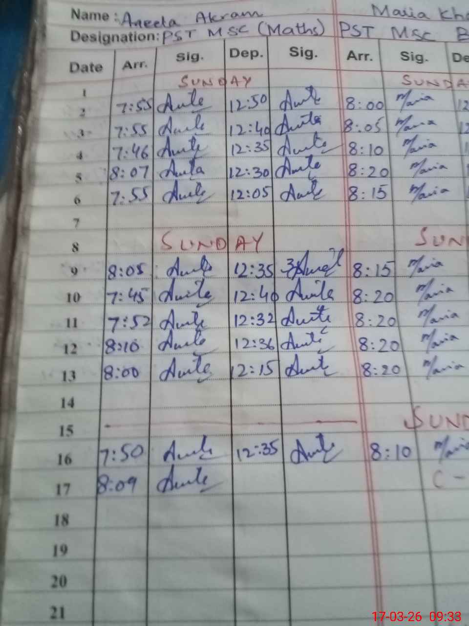 | 37**** | Ma**** Kh**** | PST Science/Maths | Regular | 0 | 0 | 0 | 0 | 0 | 0 | 0 | 0 | 0 | Casual |