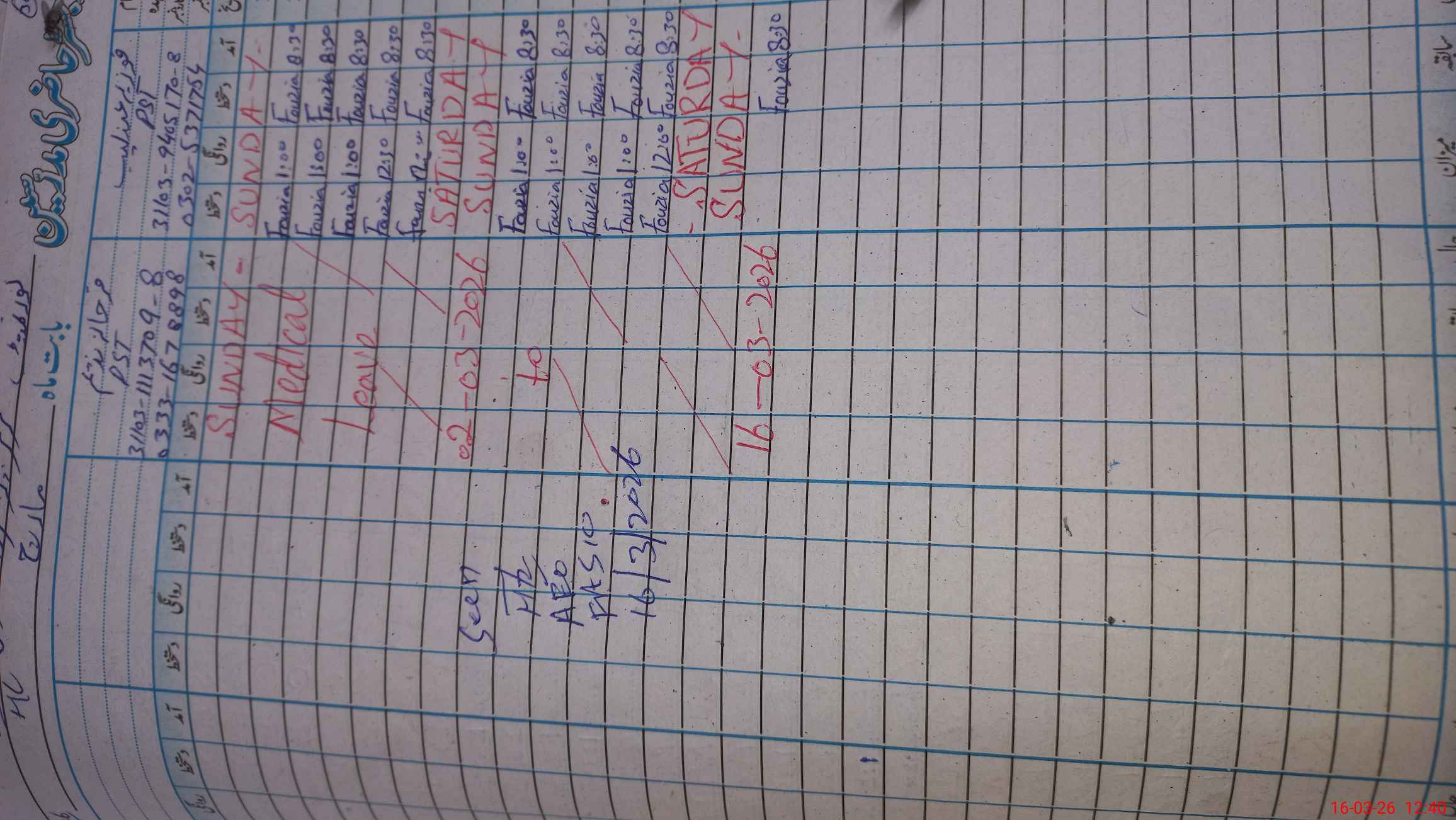 | Leave | Duty | Absent | Maternity | Medical | Ex- Pak |