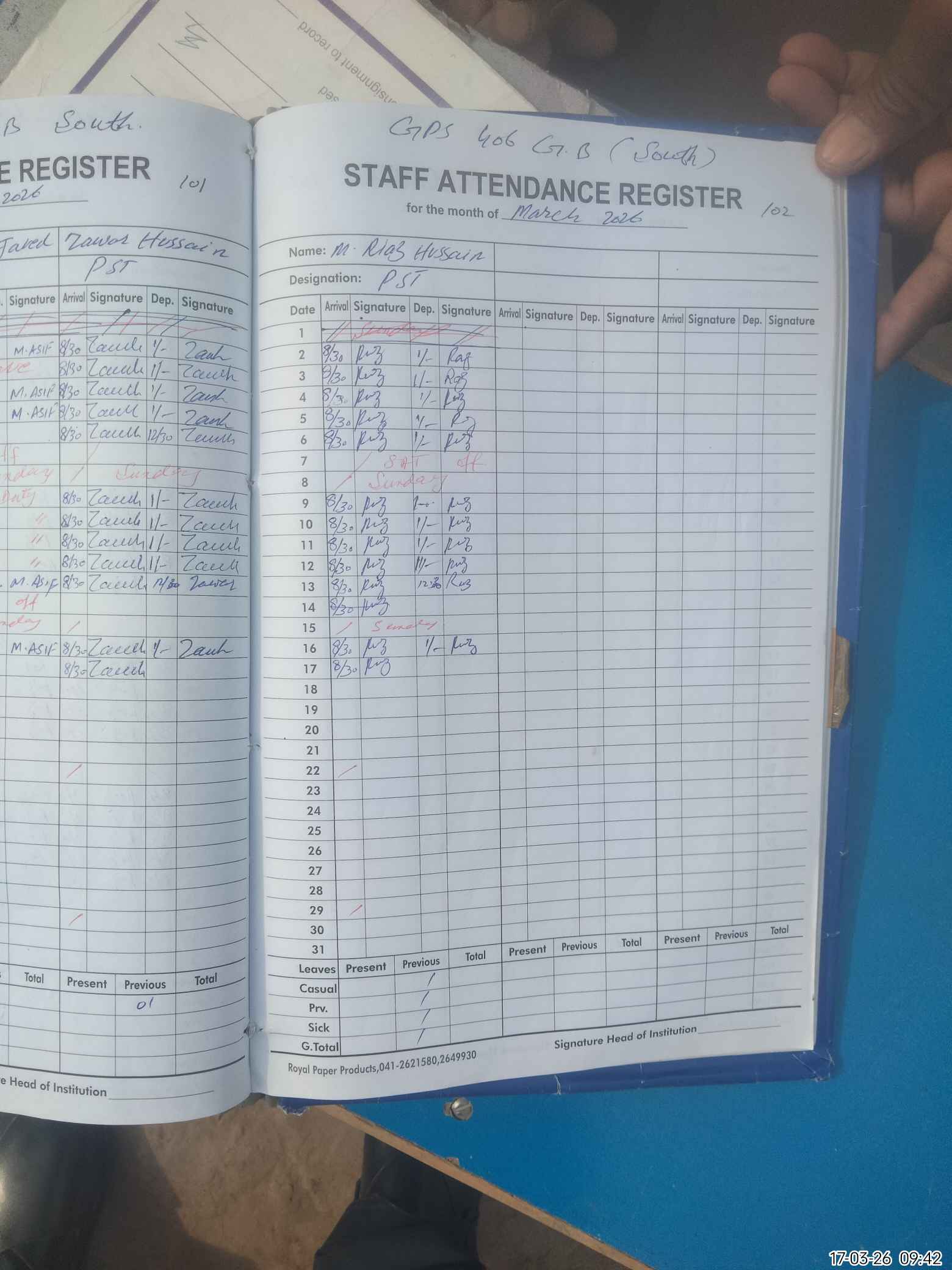 | CNIC | Full Name | Designation | R/C | Absence During Last Calender Month |