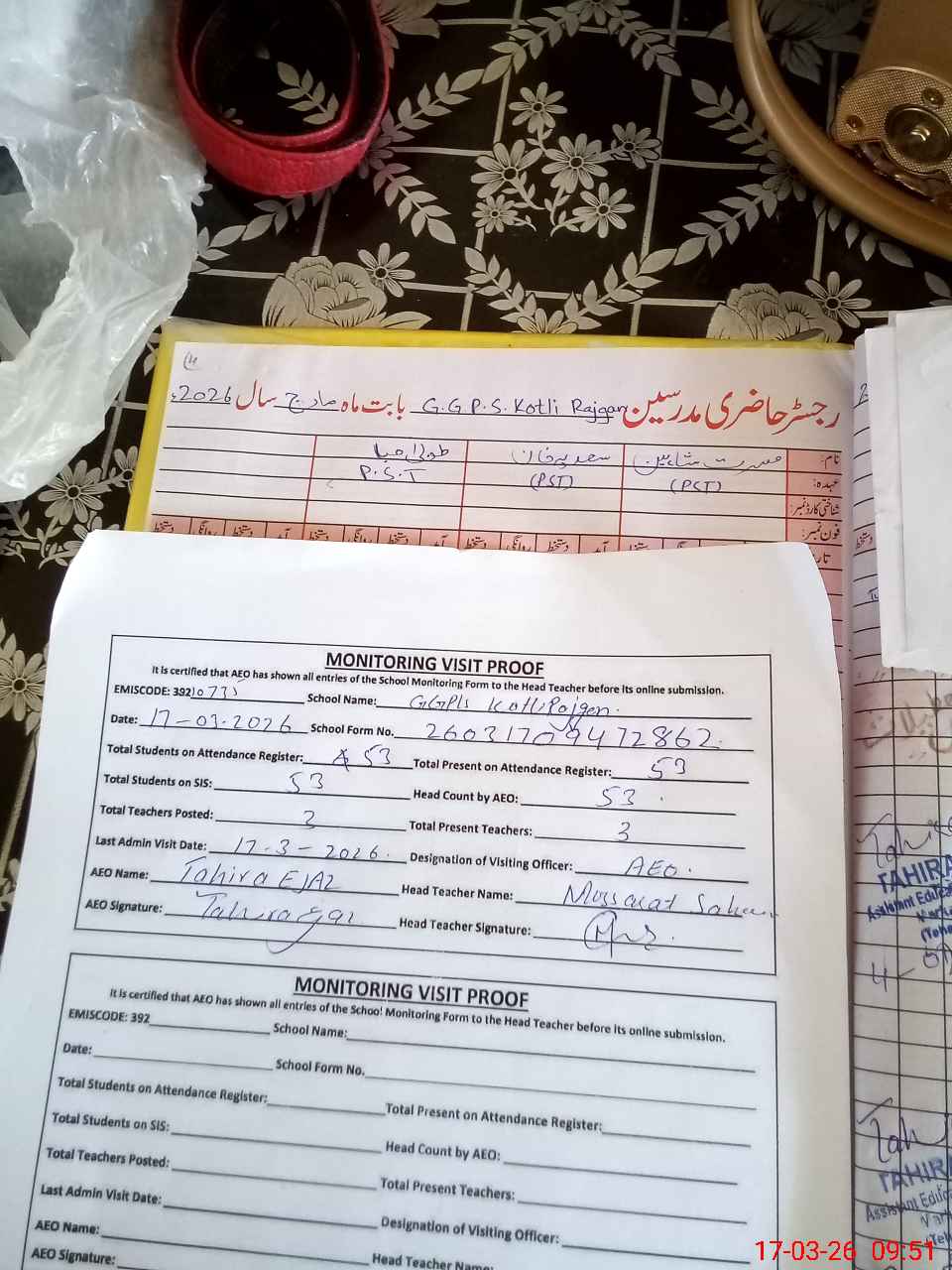 | Attendance Register | Head Teacher | MEA with School | Visit Proof |